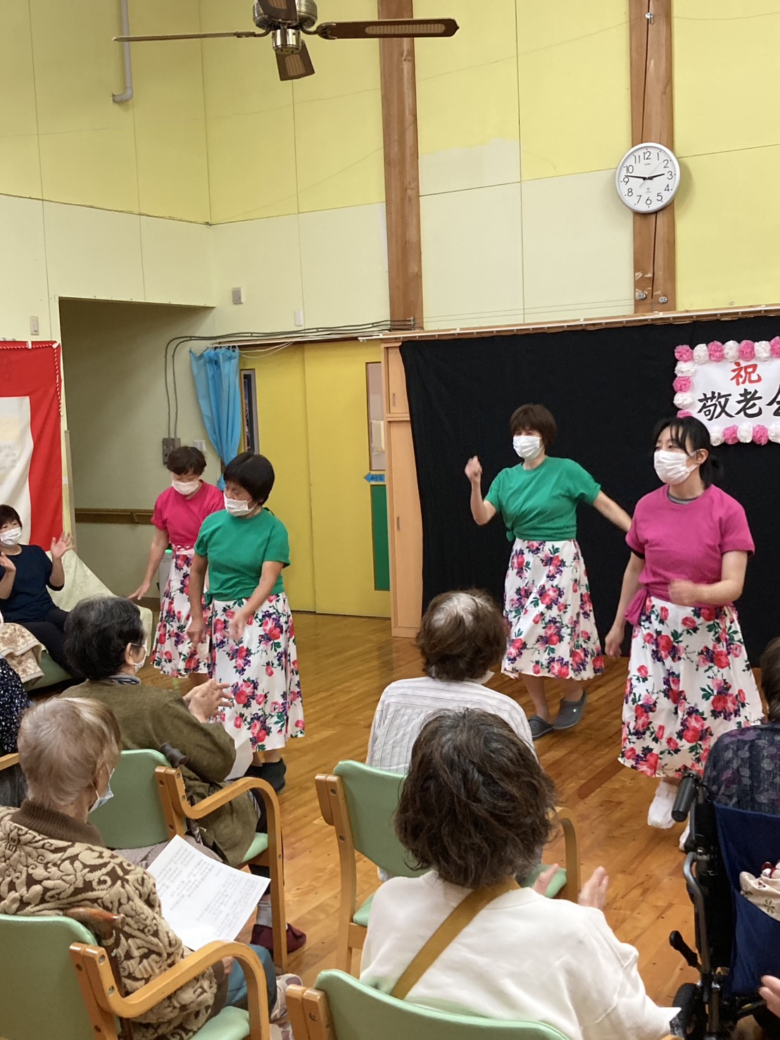 祝☆敬老会を開催しました👏👏 🌸敬老会プログラム🌸 ・祝い船 ・オクラホマミキサー ・世界の国からこんにちは ・ドンパン節 ・一緒に歌いましょう ・銀座カンカン娘 ・よさこいソーラン ・星降る街角 ・二十一世紀音頭 ・記念撮影 職員も張り切って踊りました👍みなさん笑顔で楽しんで頂けて良かったです😊 これからもお元気で、ホームに通って下さいね💐💐