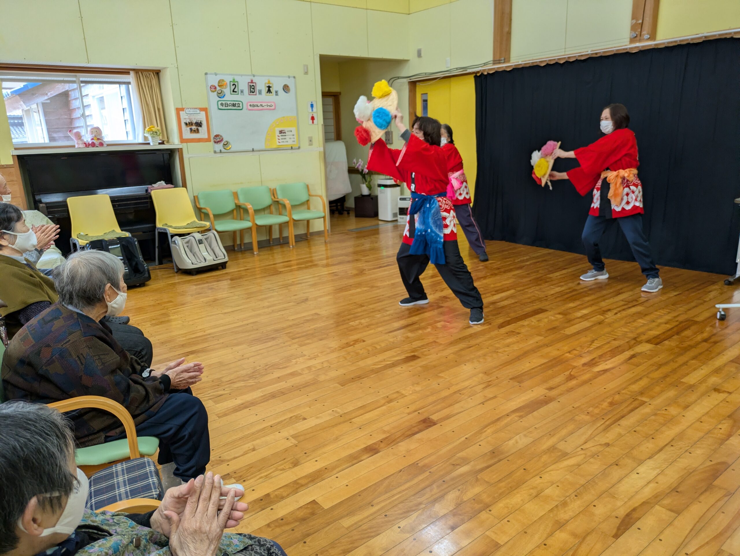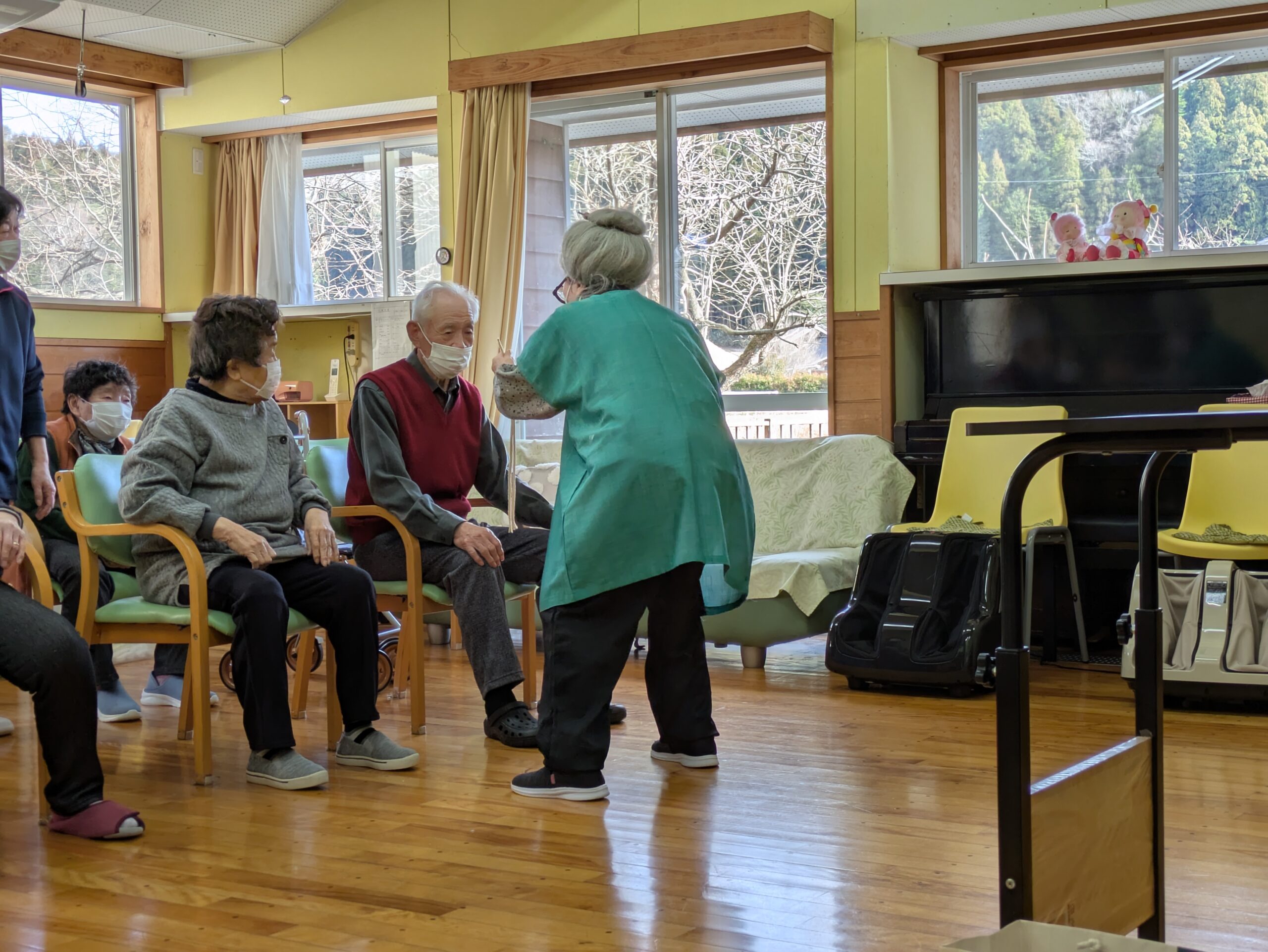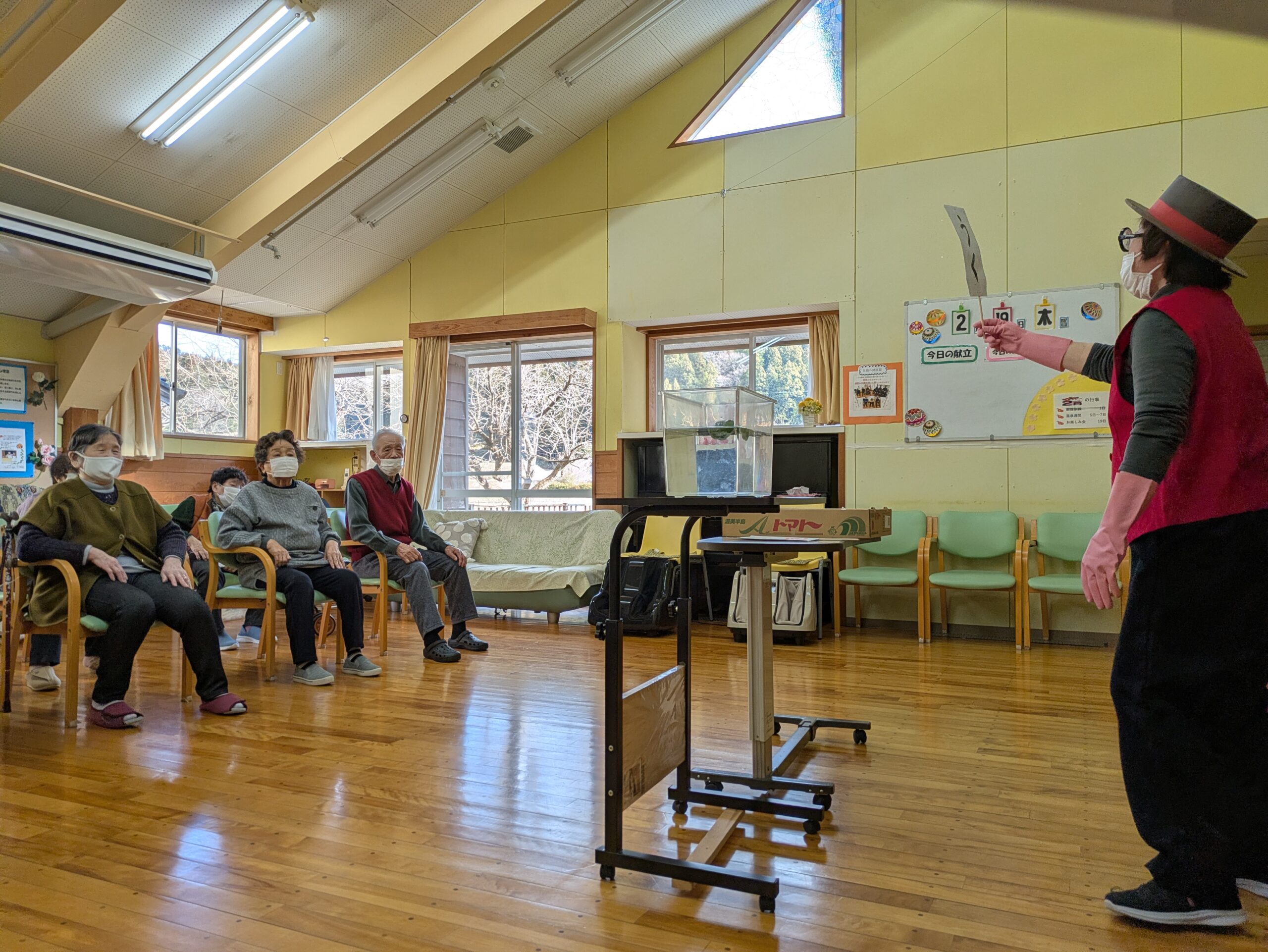 2月のお楽しみ会では、歌・踊り・手品・実験と盛りだくさんでした👏 実験では色々な物を水槽に入れ、沈む?沈まない?を実験しました🍎 「それは重そうやから沈む」「沈んだと思ったら浮いてきたわ」等 利用者様も職員も盛り上がっていましたよ😊 季節の変わり目は体調が崩れやすいので、気をつけて過ごして下さいね。
